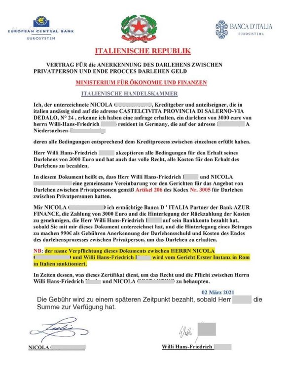 The scam works with specially set up websites, advertisements or comments promising cheap, easy or SCHUFA-free loans from banks and intermediaries from other EU countries or from private individuals.
